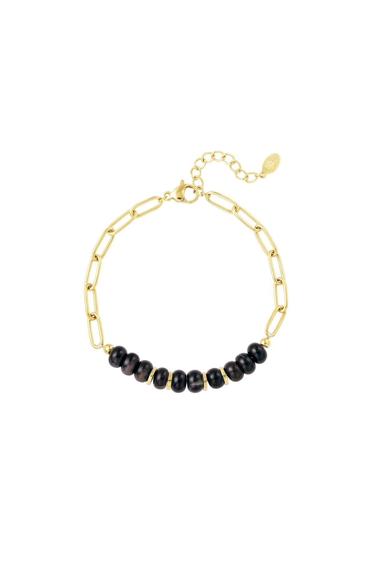 Chunky armband met zwarte natuursteen kralen en schakel ketting