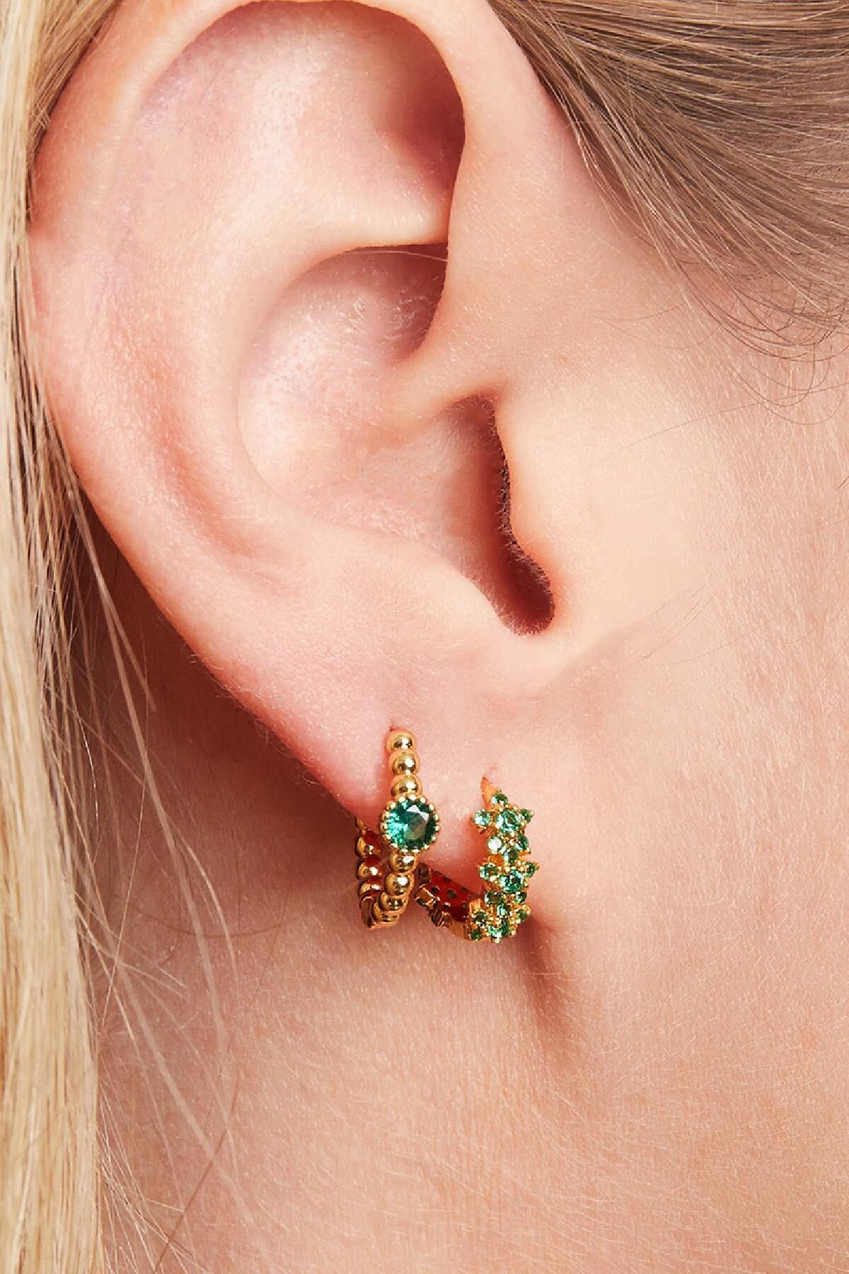 Goud met groene zirkonia steentjes