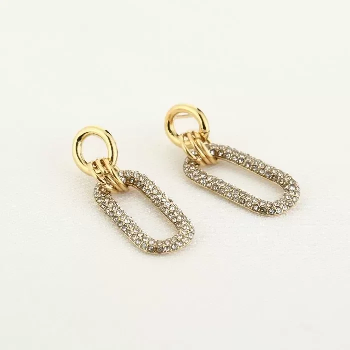 Luxe oorbellen met Shiny strass steentjes... het nieuwe Model van onze bestseller met rechthoekige oorring ..