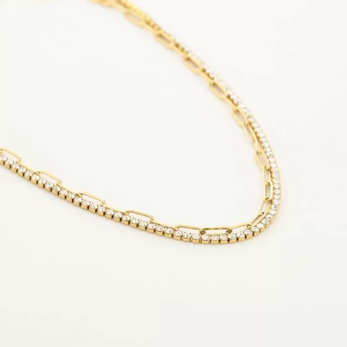 Stoere en Elegante ketting in één.. dankzij de stoere schakel ketting schitterd een ketting bezet met Shiny strass steentjes