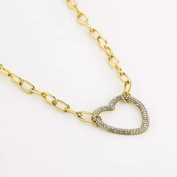 Schitterde schakel ketting met vallend hart bezet vol met strass steentjes