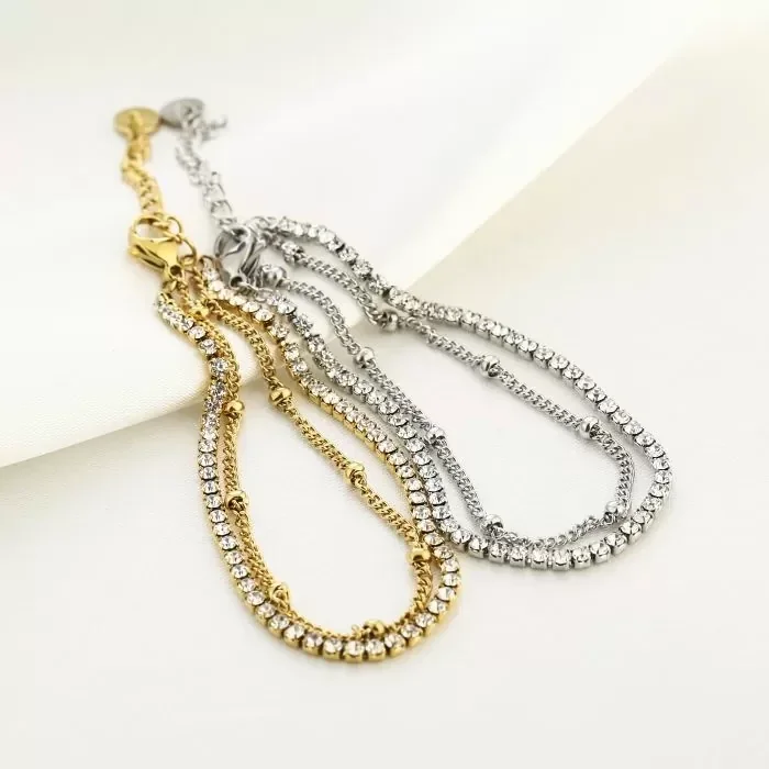Ook verkrijgbaar in het goud Armband Dubbel Strass Goud