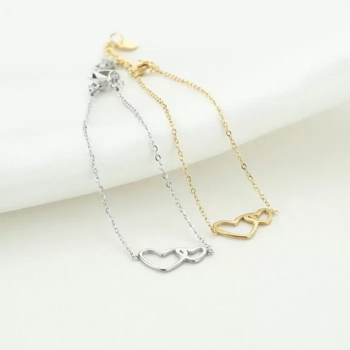 Dit schatje is ook verkrijgbaar in het goud Armband Two Hearts Goud