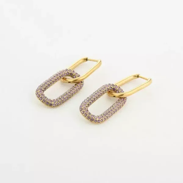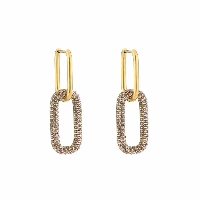leuke schakel oorbellen met paarse strass steentjes