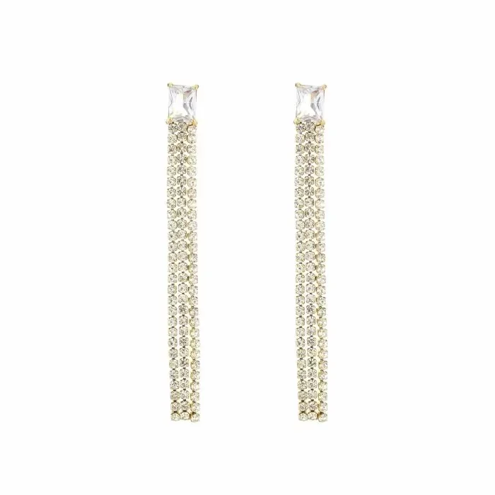 Schitter de gehele avond met deze lange Strass oorbellen met transparante glas steen .. de perfecte oorbellen bij je feestelijke outfit