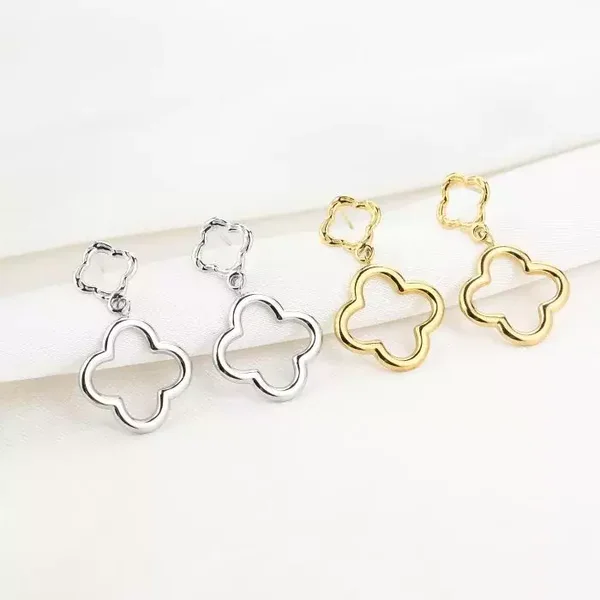 ook verkrijgbaar in het goud Oorbellen Dubbele open Klavers Goud