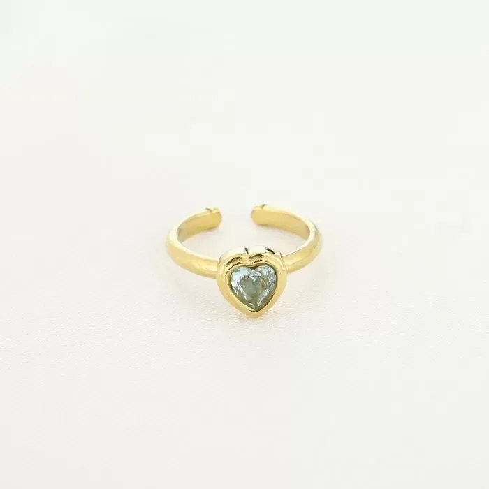 Romantiche ring met grijs kleurige glas steen in de vorm van een hartje