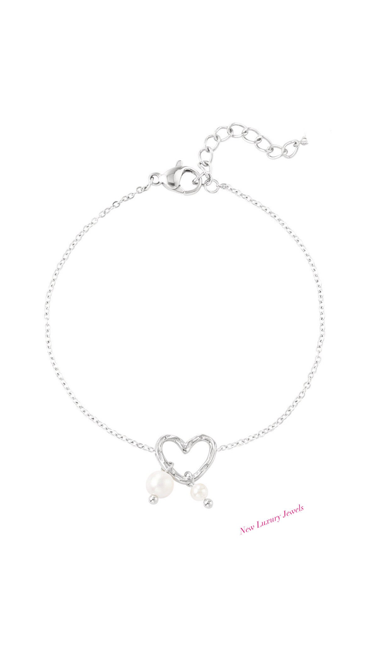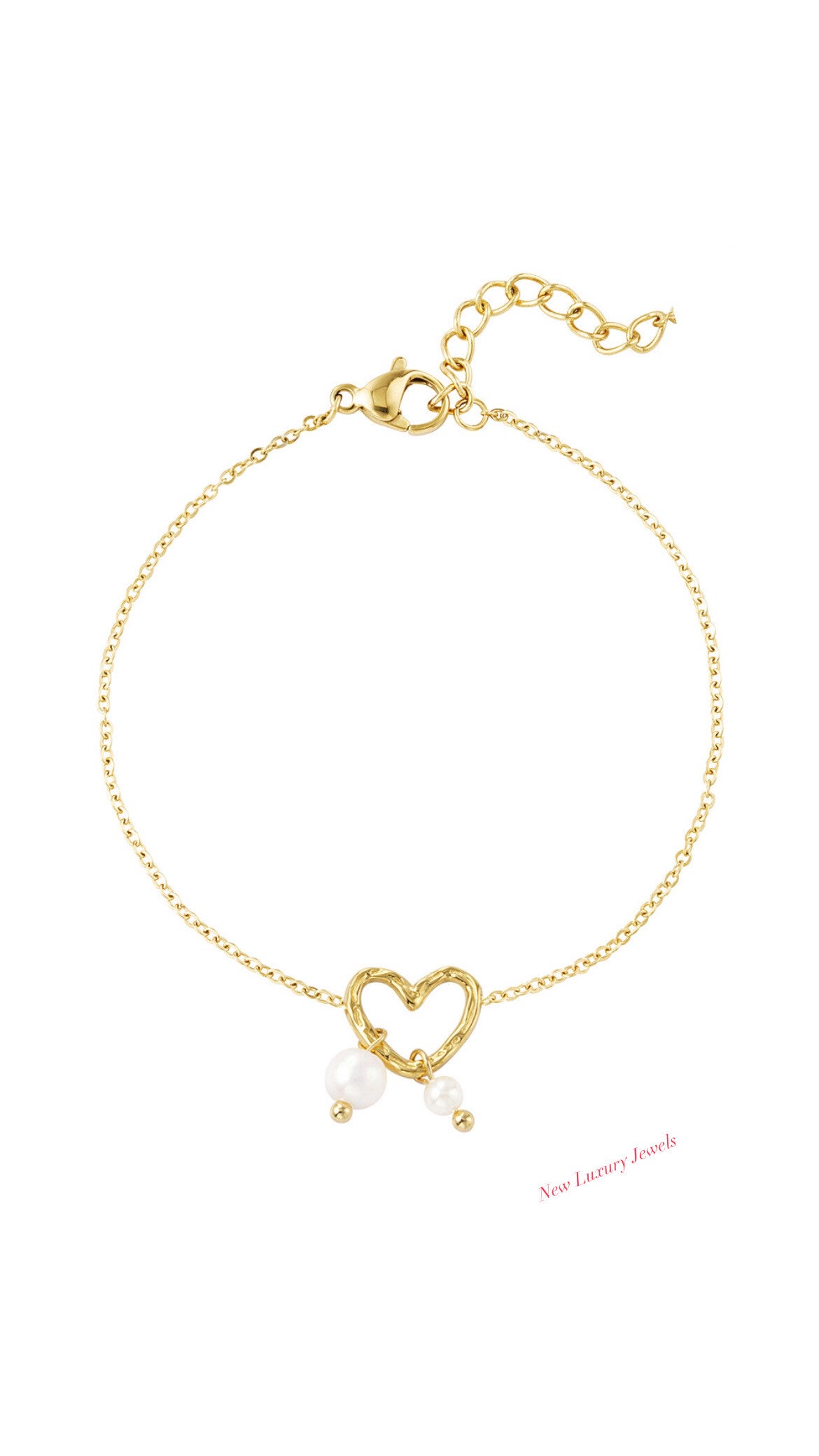 Wij zijn In Love 🤩 op deze chique en stijlvolle armband met een liefdevol hartje en vallende imitatie pareltjes