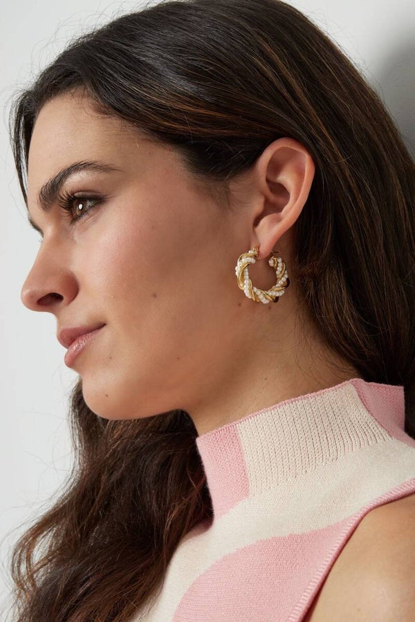 Maak je look compleet met deze prachtige oorringen met parels gedraaid uit onze nieuwe voorjaarscollectie 2024