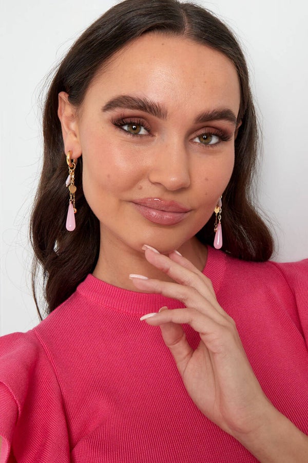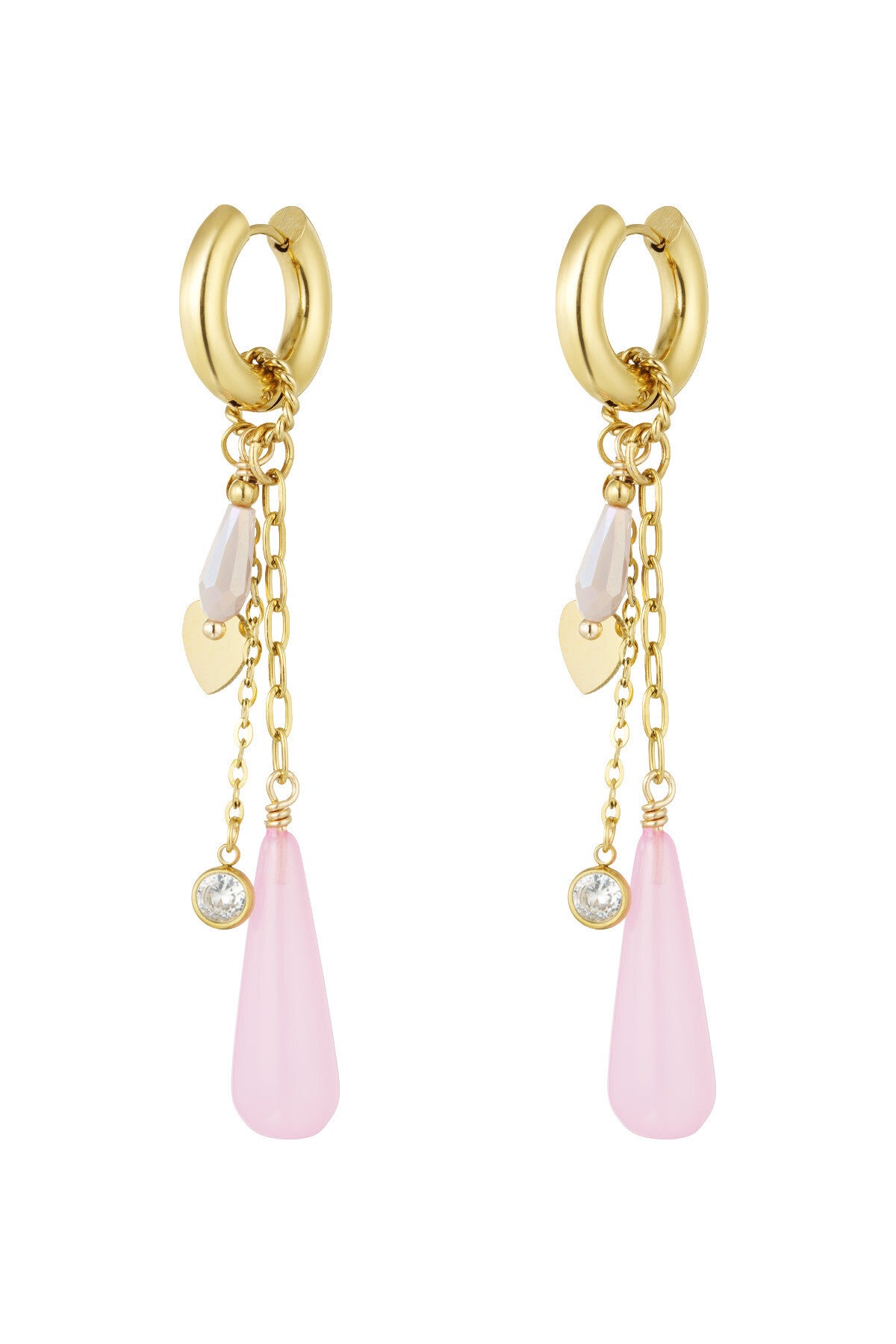 Gezellige statement oorbellen met vrolijke hangende bedels van glas kralen hematiet en strass steentjes afgewerkt met acryl