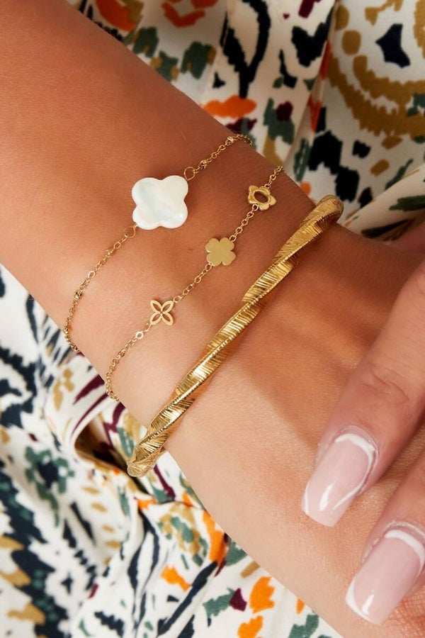 Schattig basic armbandje met 3 verschillende bloem bedeltjes