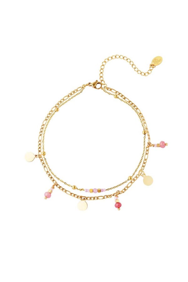 Loop deze zomer met een positieve vibe om je enkel met dit dubbel gelaagde enkelbandje met vrolijke bedels