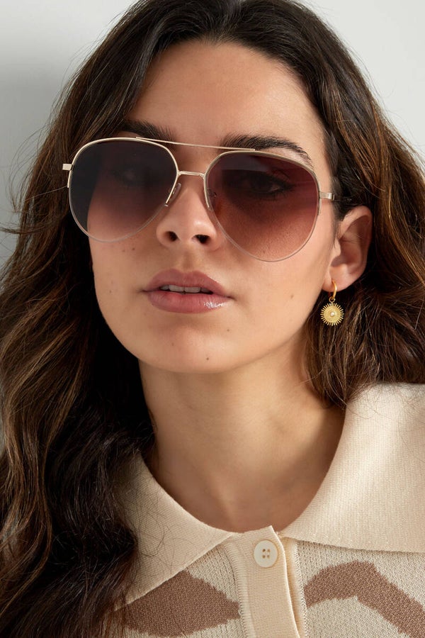 Maak je chique of juist stoere outfit compleet deze zomer met deze mega trendy aviator stijl zonnebril met bruin kleurige glazen