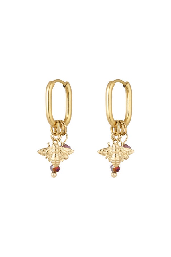 Deze schattige oorbellen met een goudkleurig bijtje en kleurrijke glas & steentjes versieringen... Daar wordt je toch vrolijk van. Stainless Steel - Glas - Steen