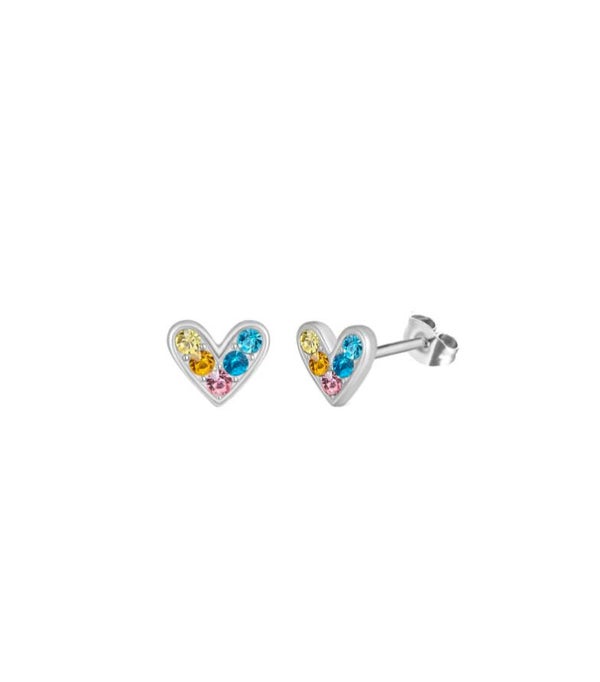 Vrolijke hartjes Oorstekers met regenboog kleuren strass steentjes bezet ook heel leuk voor kinderen