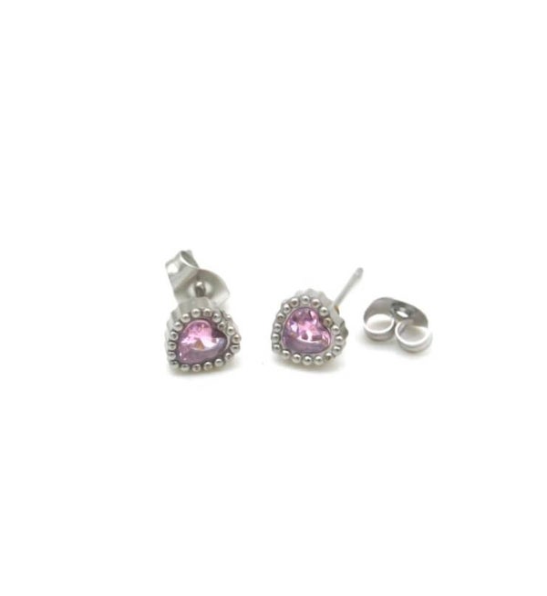 Classy Oorstekers in hartjes vorm met lichtroze strass steen