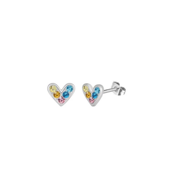 te schattig zijn deze stralende hartjes oorstekers met rainbow kleur Strass steentjes
