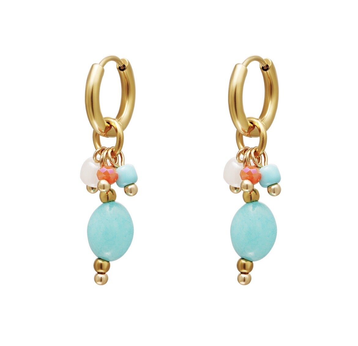 Gouden oorringen met Kleurrijke bedels en steentjes
