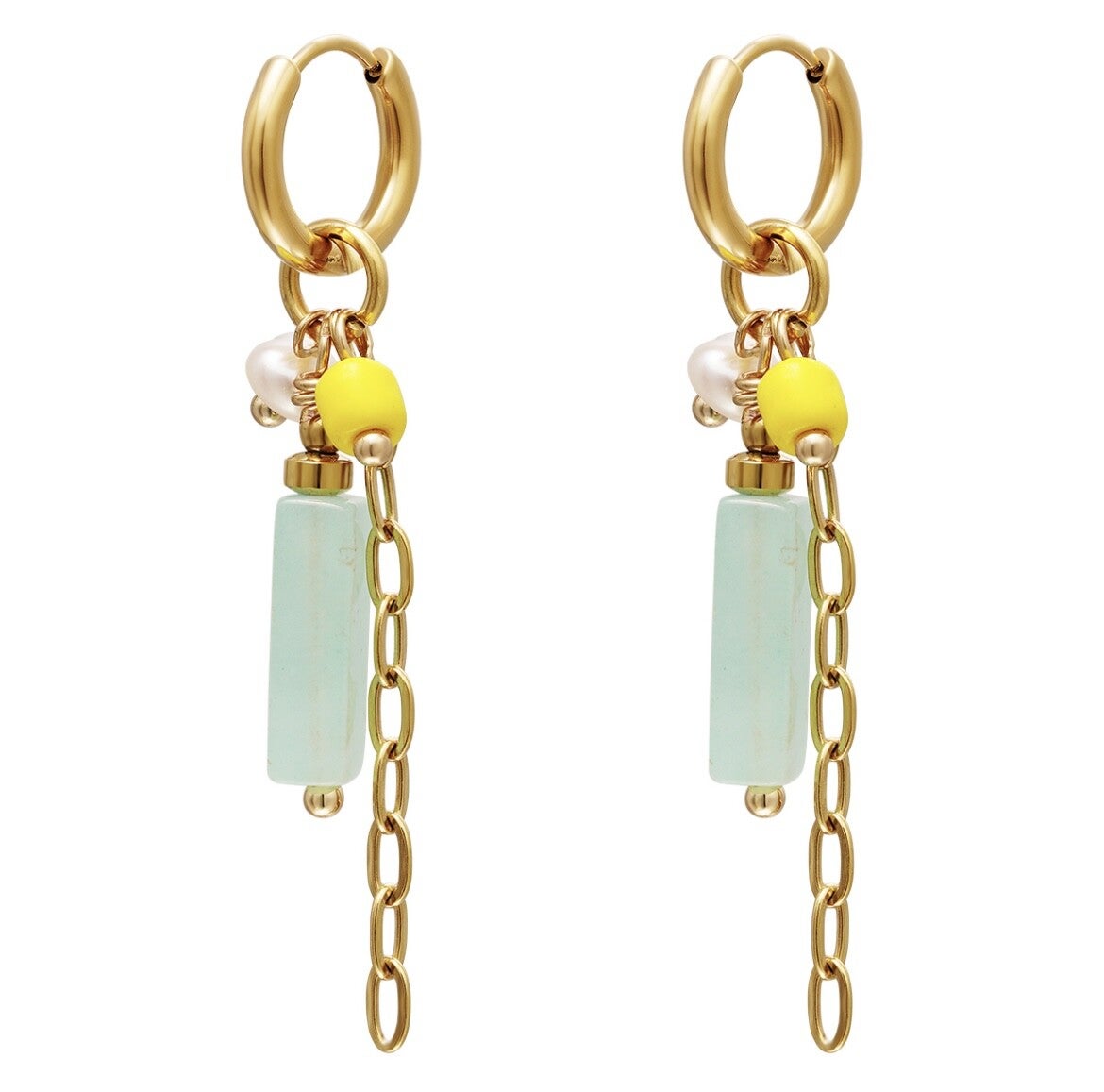 Deze Stainless steel oorbellen hebben een kettingtje met witte steentjes
