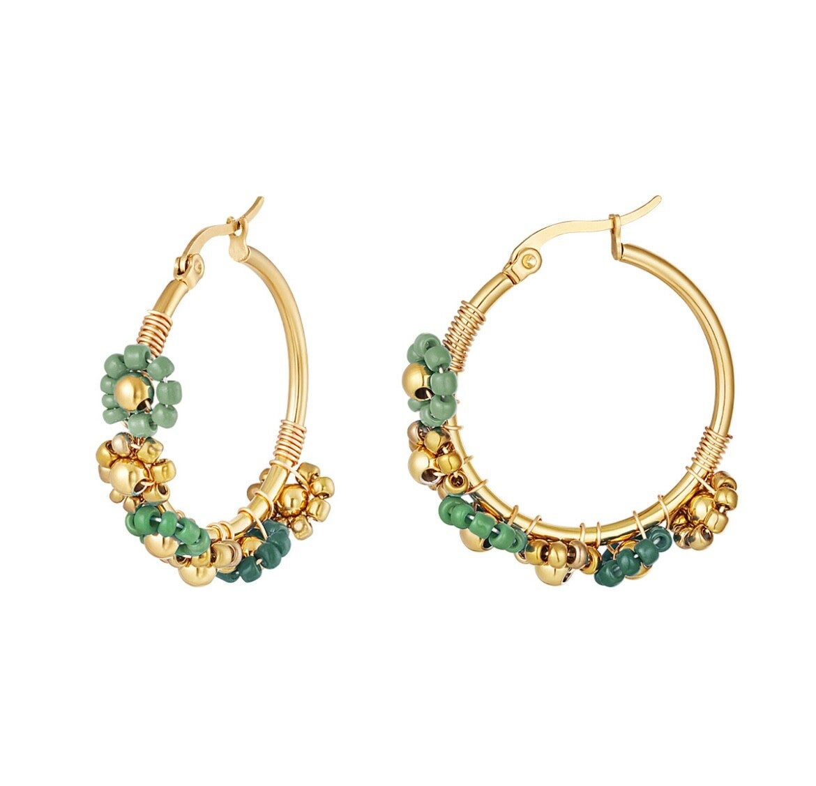Leuke Stainless steel oorbellen met vrolijke bloementjes gemaakt van glaskralen.