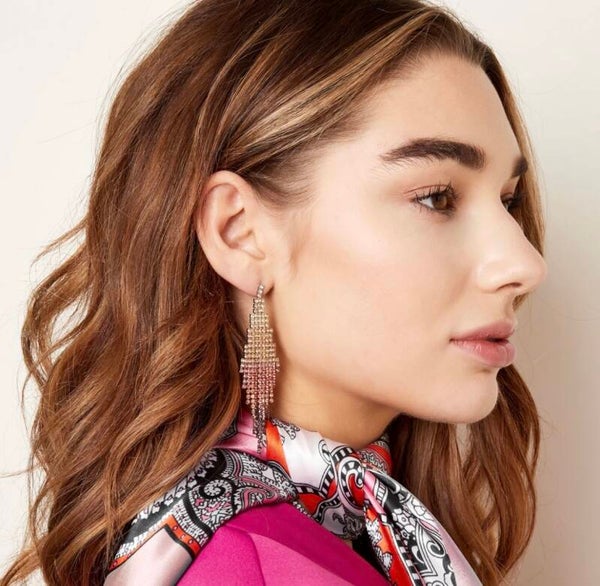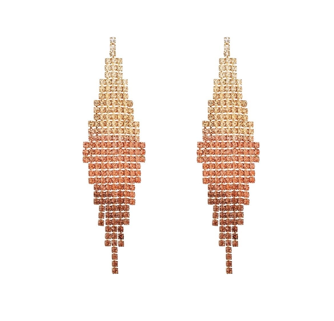 Prachtige strass oorbellen in de vorm van een ruit. De oorbellen hebben een afmeting van 8.5 cm.