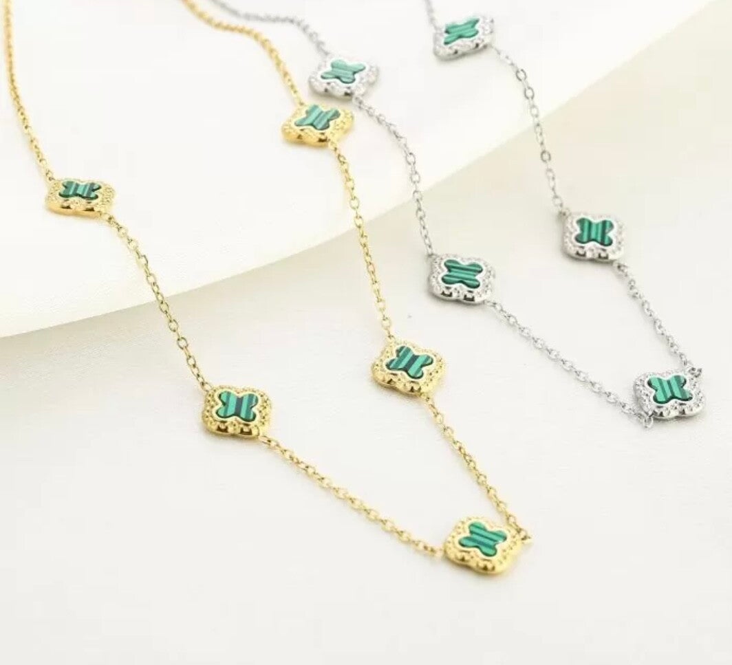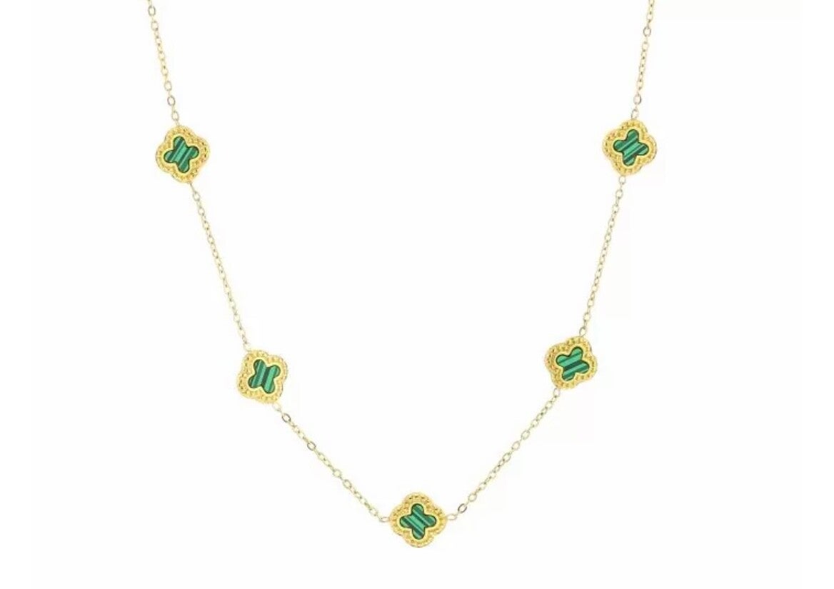 klaver ketting goud/groen. Ook verkrijgbaar in het zilver.