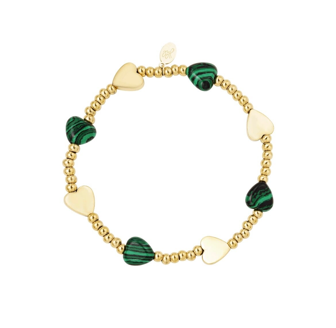 Armband Kralen met Hartjes Groen - Goud